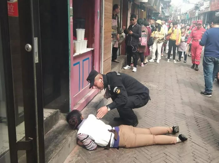 5月2日下午,清遠(yuǎn)保安韓明乾和邸秀鑫在芙蓉街巡邏時(shí),接到群眾求助稱有一名女游客在游玩時(shí)暈倒在胡同內(nèi),隊(duì)員一邊撥打120,一邊迅速趕往現(xiàn)場(chǎng),由于天氣炎熱隊(duì)員們先是合力將暈倒的游客移至陰涼處,后又協(xié)助120急救人員對(duì)游客進(jìn)行了緊急救治。